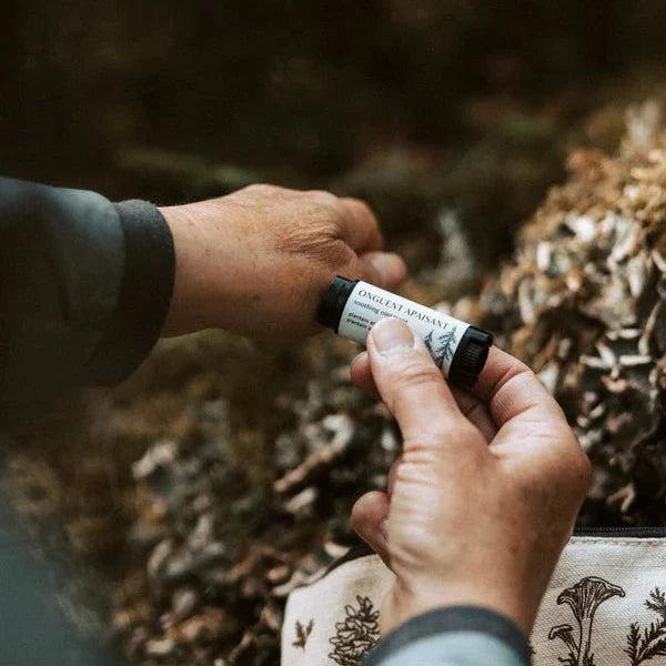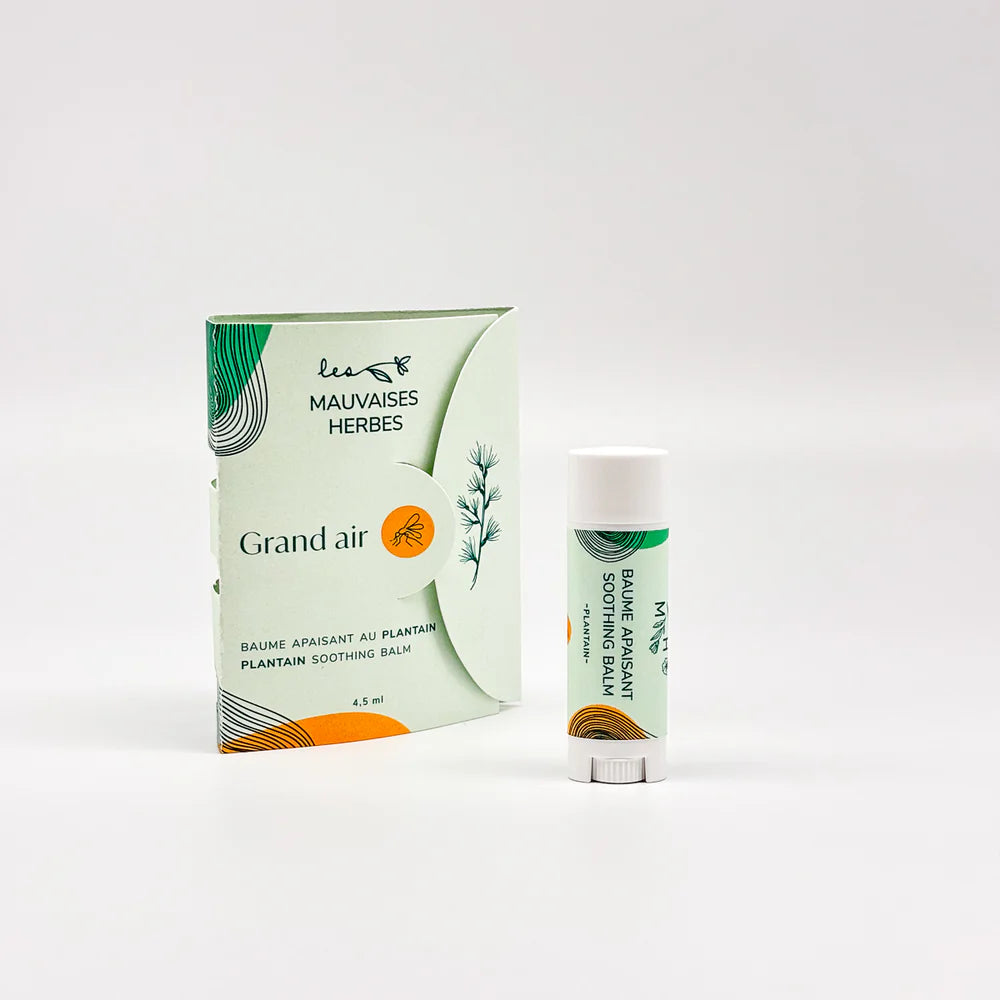 Ce baume apaisant de la collection Grand air, fait à base d'une macération de plantain frais et d'huiles essentielles apaisantes soulage et prend soin des peaux prises d'assaut!