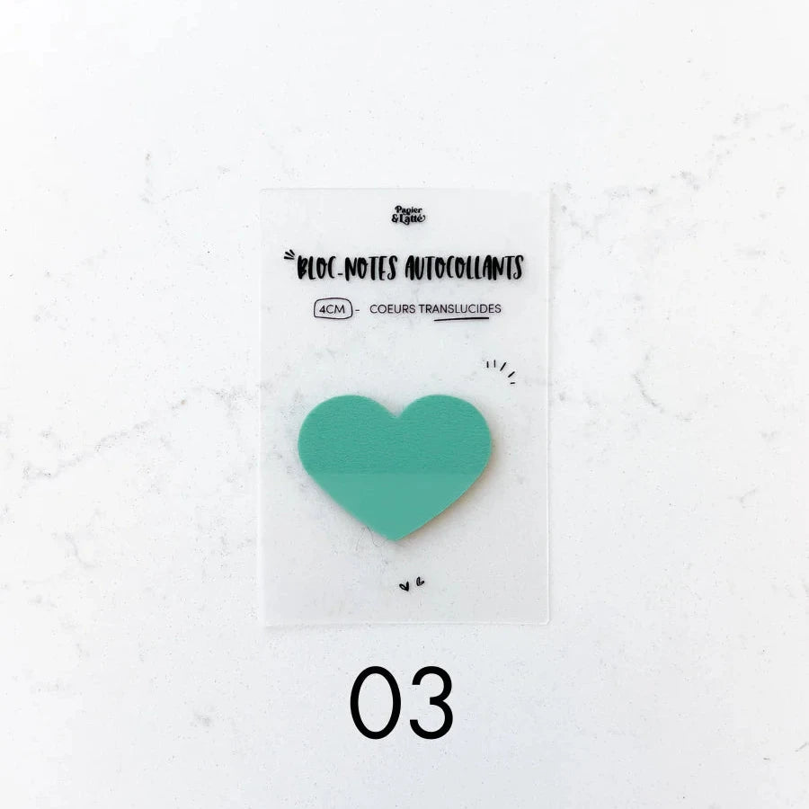 Bloc-notes autocollants translucides - Coeurs 4 cm