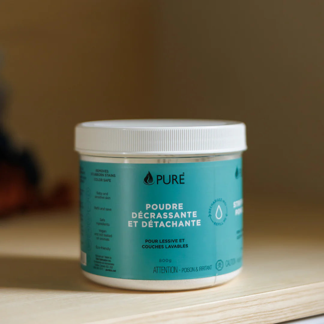 La poudre décrassante et détachante est parfaite pour l’entretien des couches lavables, les culottes menstruels, linge de bébé et plus encore! Sans arôme, ce produit peut optimiser ton détergent lessive devant tout défi de lavage : odeur, tache et plus encore. Ce produit écologique redonnera l’éclat blanc aux couches lavables et aux vêtements de votre enfant.